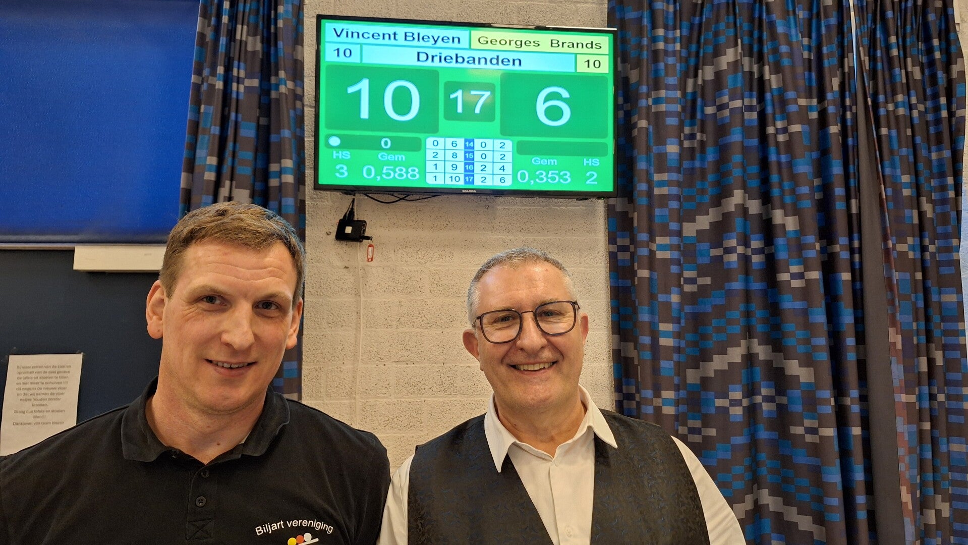 De finale werd gewonnen door Vincent Bleyen, spelend voor 't Witte Paard. De 2é plaats was voor onze eigen ex-winnaar Georges Brands,