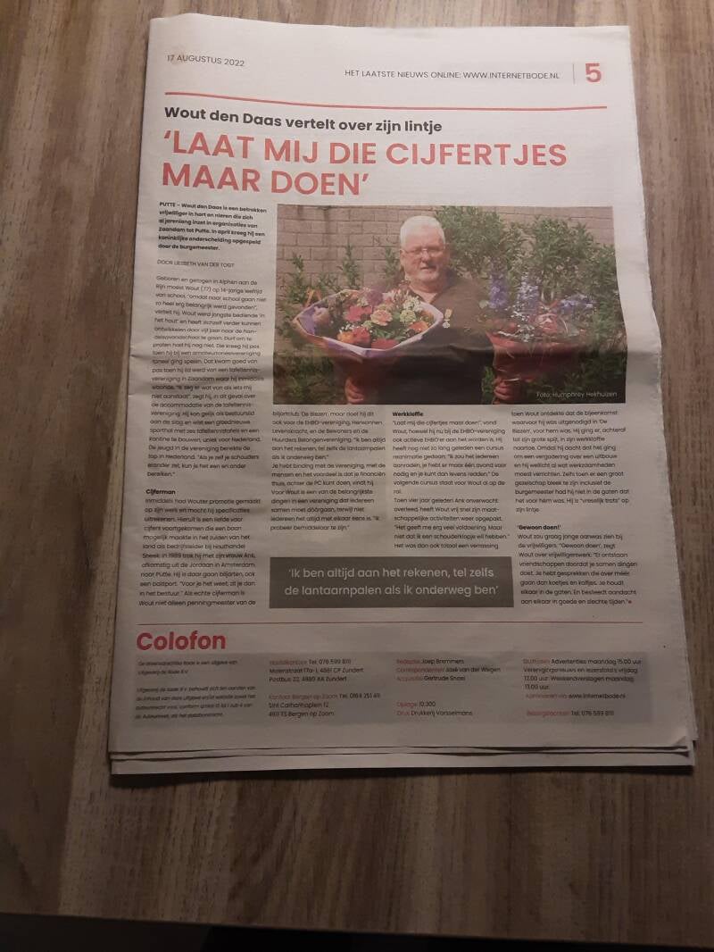 Na de uitreiking van "het lintje" geeft onze Wout een interview. Druk op lees meer.