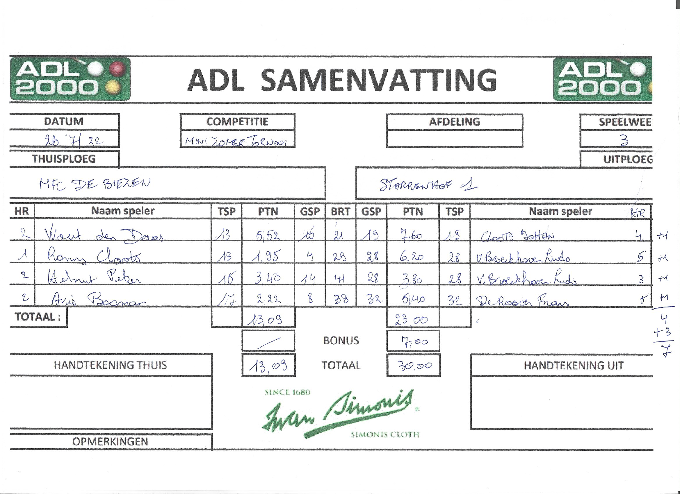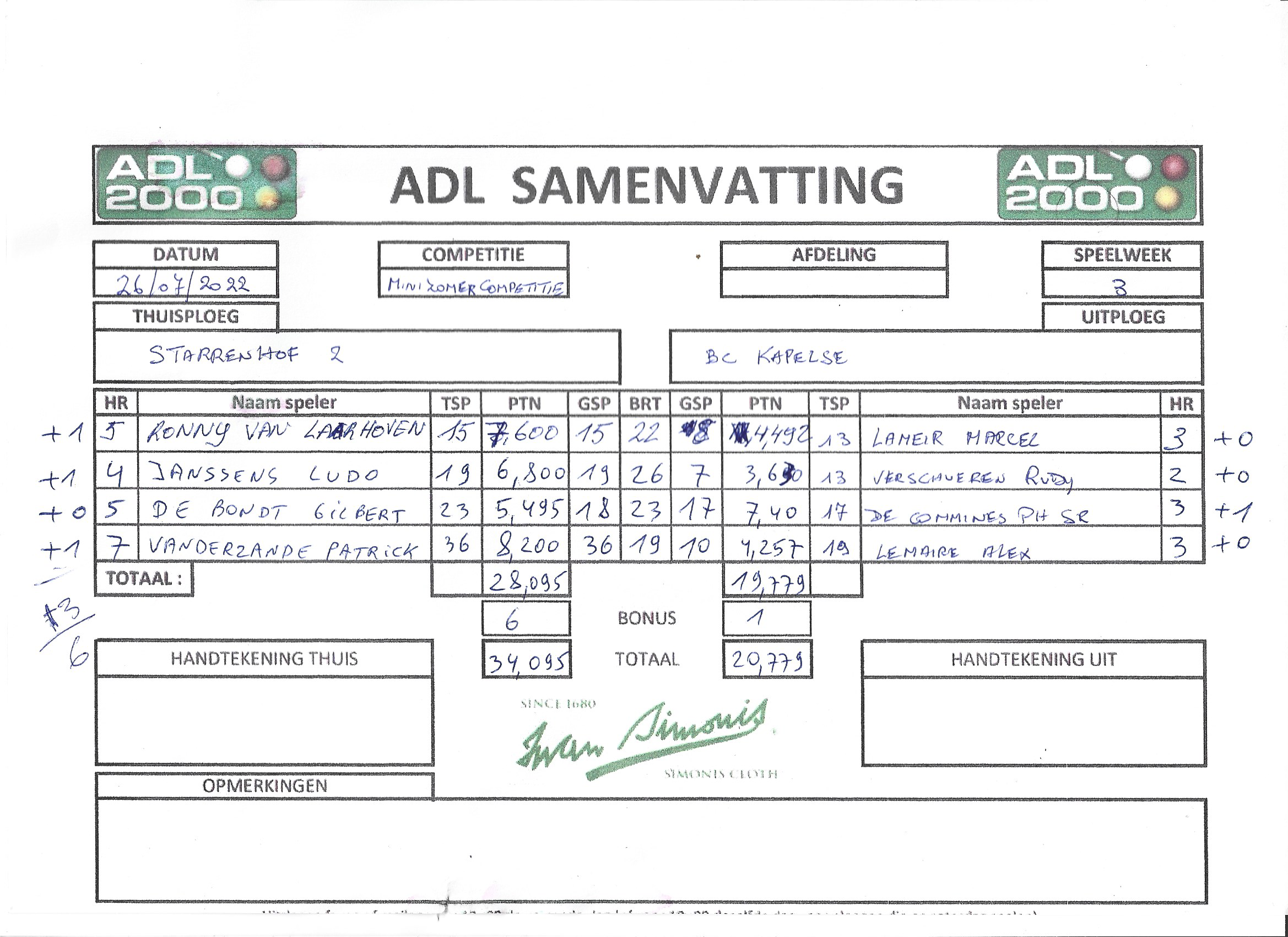 Dus Ronny Van Laarhoven heeft een reeks van 5 gespeeld en tsp is 15